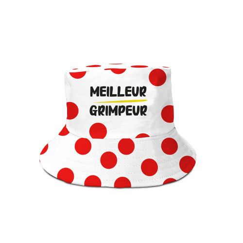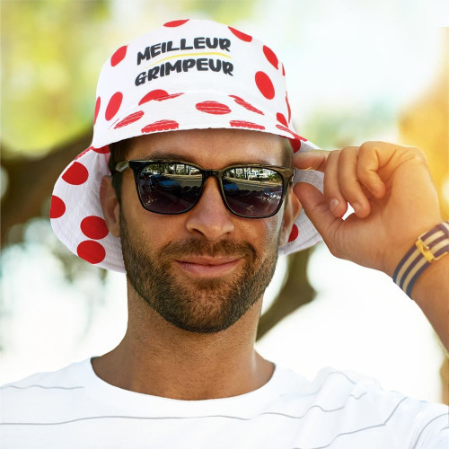 Avec son look décalé et son clin d’œil aux maillots à pois rouges du Tour de France, le bob homme "Meilleur Grimpeur" est l’accessoire indispensable de l’été pour tous les fans de vélo et de barbecues en plein soleil ! Fabriqué en polyester, ce bob blanc à pois rouges affiche fièrement la mention "Meilleur Grimpeur" en noir, pour motiver les cyclistes du dimanche ou féliciter les champions de la montée… vers le transat. Que ce soit pour des vacances sportives ou pour chiller à l’ombre avec style, ce chapeau au format pratique (L. 34 cm x l. 16 cm x H. 22 cm). Une pièce fun et estivale.