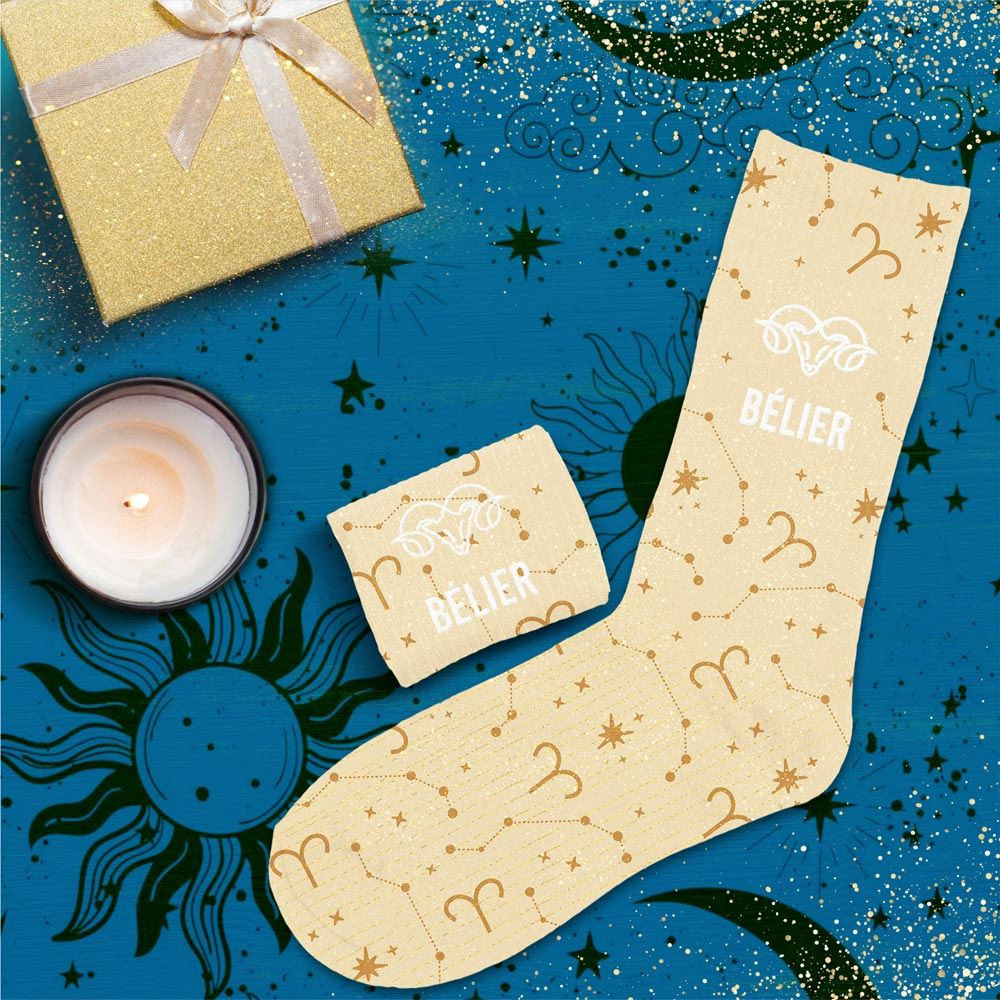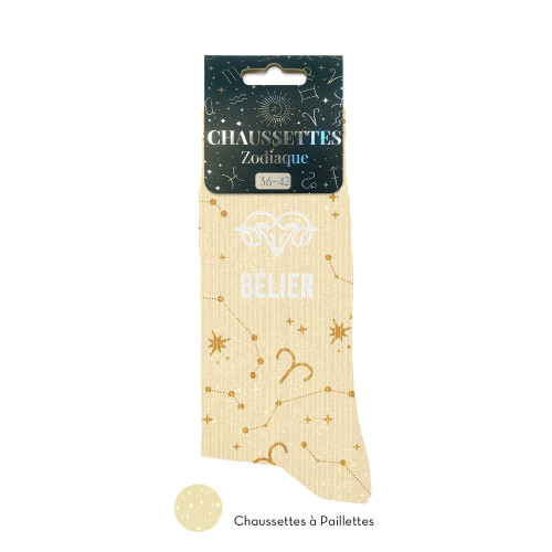 Accrochez-vous à vos chaussettes (surtout celles-ci), car voici le modèle parfait pour les Béliers, ces boules d’énergie zodiacales nées entre le 21 mars et le 20 avril, qui foncent tête baissée dans la vie, les projets… et parfois dans les meubles. Ces chaussettes à paillettes couleur beige (parce que même un Bélier a besoin d’un peu de neutralité pour calmer le feu intérieur) sont décorées d’un motif de constellations qui clame haut et fort : « je suis le premier signe du zodiaque, donc évidemment, je suis le meilleur ». Taillées en 36-42, elles s’enfilent à la vitesse d’un Bélier impatient de partir à l’aventure ou de remporter une compétition de qui-met-ses-chaussettes-le-plus-vite. C’est le cadeau idéal pour ce Bélier dans votre entourage qui transforme chaque moment en mission, qui commence toujours par « laisse, je vais le faire » et qui, grâce à ces chaussettes, pourra désormais galoper vers ses objectifs avec style, paillettes et autorité céleste aux pieds.