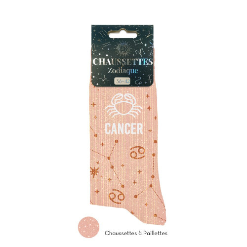 Avis à tous les petits crabes sensibles du zodiaque : voici les chaussettes à paillettes parfaites pour envelopper vos pieds (et vos émotions) dans un cocon de douceur cosmique ! Nés entre le 22 juin et le 22 juillet, les Cancers sont réputés pour leur grande tendresse, leur talent inné pour chialer devant un dessin d’enfant et leur passion pour les soirées cocooning sous un plaid, à condition qu’il y ait du chocolat à portée de main. Ces chaussettes orange, pétillantes comme leur cœur débordant d’amour, sont décorées de constellations dédiées à leur signe et brillent juste assez pour illuminer une crise existentielle ou un moment de nostalgie intense. Taille 36-42, elles seront les alliées idéales de toutes les âmes sensibles qui veulent prendre soin de leur look tout en restant bien ancrées dans leur zone de confort émotionnel. C’est l’idée cadeau rêvée pour ce Cancer dans votre entourage qui a toujours un petit mot doux dans la poche, une playlist triste dans les oreilles, et désormais… des chaussettes à paillettes aux pieds.