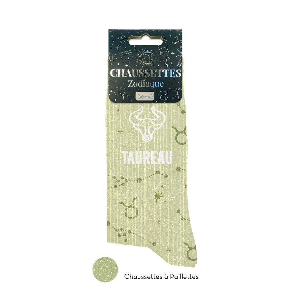 Avis aux Taureaux têtus qui n’avancent que s’ils ont du style aux pieds : ces chaussettes à paillettes sont là pour faire briller votre côté zodiacal sans renier votre amour du confort ! Vertes comme un pâturage de luxe avec un motif de constellations digne d’un ciel printanier, elles rendent hommage au signe du Taureau (21 avril - 20 mai), réputé pour sa sensualité, sa loyauté... et sa capacité à s’offrir des trucs trop mignons sans attendre l’approbation de Mercure. Parfaites pour les amateurs d’astrologie et de petits plaisirs vestimentaires, ces chaussettes taille 36-42 sont une idée cadeau géniale pour vous ou pour ce taureau de votre entourage qui prétend ne pas croire aux horoscopes mais connaît quand même son ascendant.