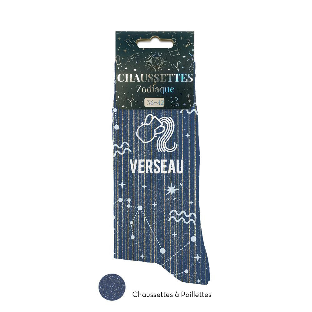 Préparez-vous à électriser votre style avec ces chaussettes à paillettes bleu nuit, spécialement conçues pour les Verseaux, ces êtres aussi imprévisibles qu’attachants, nés entre le 21 janvier et le 18 février, qui passent sans transition d’une théorie révolutionnaire sur l’avenir de l’humanité à une recette de smoothie à la spiruline. Véritables ovnis du zodiaque, les Verseaux adorent se démarquer, briser les codes et porter des chaussettes qui brillent plus fort que leurs idées farfelues (et c’est pas peu dire). Avec leur motif constellation inspiré de leur signe céleste, ces chaussettes zodiaque sont aussi originales qu’eux : un mélange subtil d’astronomie, de fashion et de « j’ai trouvé ça trop stylé sur un site bizarre à 3h du matin ». Taille 36-42, elles sont prêtes à chausser aussi bien les pieds d’un génie incompris que ceux d’un rêveur humaniste en pleine réinvention du monde depuis son canapé. Cadeau idéal pour ce Verseau dans votre vie qui est toujours à contre-courant, souvent dans la lune, et désormais… parfaitement stylé jusqu’aux orteils.