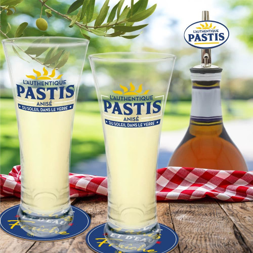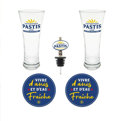 Le coffret prestige Pastis comprend les accessoires indispensables pour un petit apéro improvisé (avec modération) !