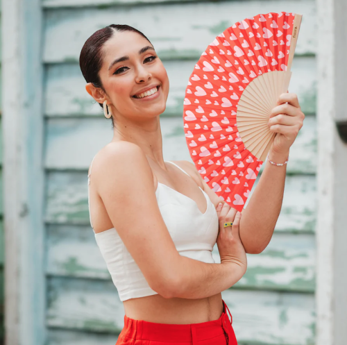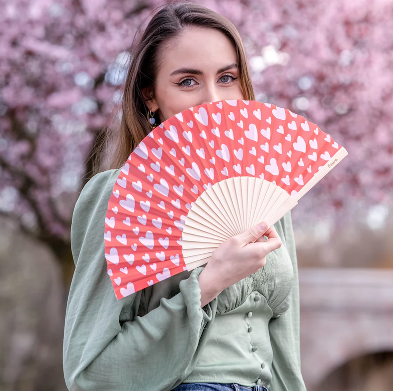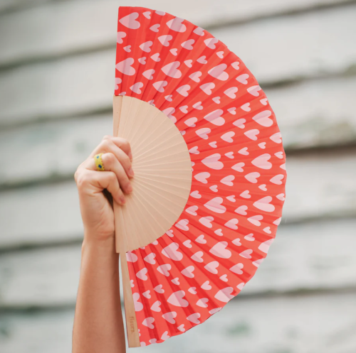 Les vacances, les amis, les apéros qui s’éternisent, les fous rires sous les étoiles… comment ne pas être amoureux de l’été ? Affichez fièrement votre passion pour les beaux jours avec cet éventail plein de cœurs, aussi mignon qu’utile. Avec ses tons rouges et roses, il ajoute une touche romantique et ensoleillée à tous vos looks estivaux, que ce soit à la plage, en terrasse ou en vadrouille. Pratique, il est équipé d’un petit cintre pour toujours l’avoir sous la main (et éviter le drame de l’éventail perdu au fond du sac ). Et parce que votre amour s’étend aussi à la planète, ce bijou de fraîcheur est fabriqué en bois issu de forêts gérées durablement et en textile respectueux de l’environnement : un coup de vent pour vous, un souffle d’espoir pour la Terre Mère. À offrir à vos proches pour leur dire "je t’aime" sans fondre sur place — un accessoire parfait pour rester frais tout en faisant fondre les cœurs.