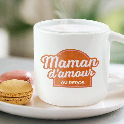 Offrez à votre maman une pause bien méritée (et stylée) avec ce grand mug "Maman d’amour au repos" – parce qu’elle le mérite mille fois, et aussi parce qu’elle a bien besoin de 40 cl de café pour survivre à vos messages WhatsApp. Avec sa jolie inscription blanche posée sur une forme orange pétillante, ce mug en céramique blanche est le mix parfait entre tendresse et caffeine. Parfait pour la Fête des Mères, un anniversaire, ou juste pour lui dire “pardon pour tout depuis 1998”.